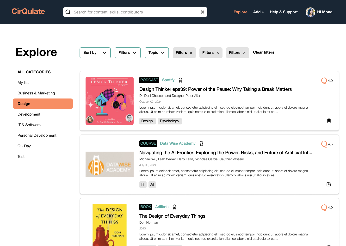 Qlue believes in personal growth and professional development and supports their consultants when they need help. My team and I were asked to build a collaborative knowledge-sharing platform where employees can easily find interesting content, share their own, and leave reviews and ratings to help each other grow professionally in areas they are interested in.
