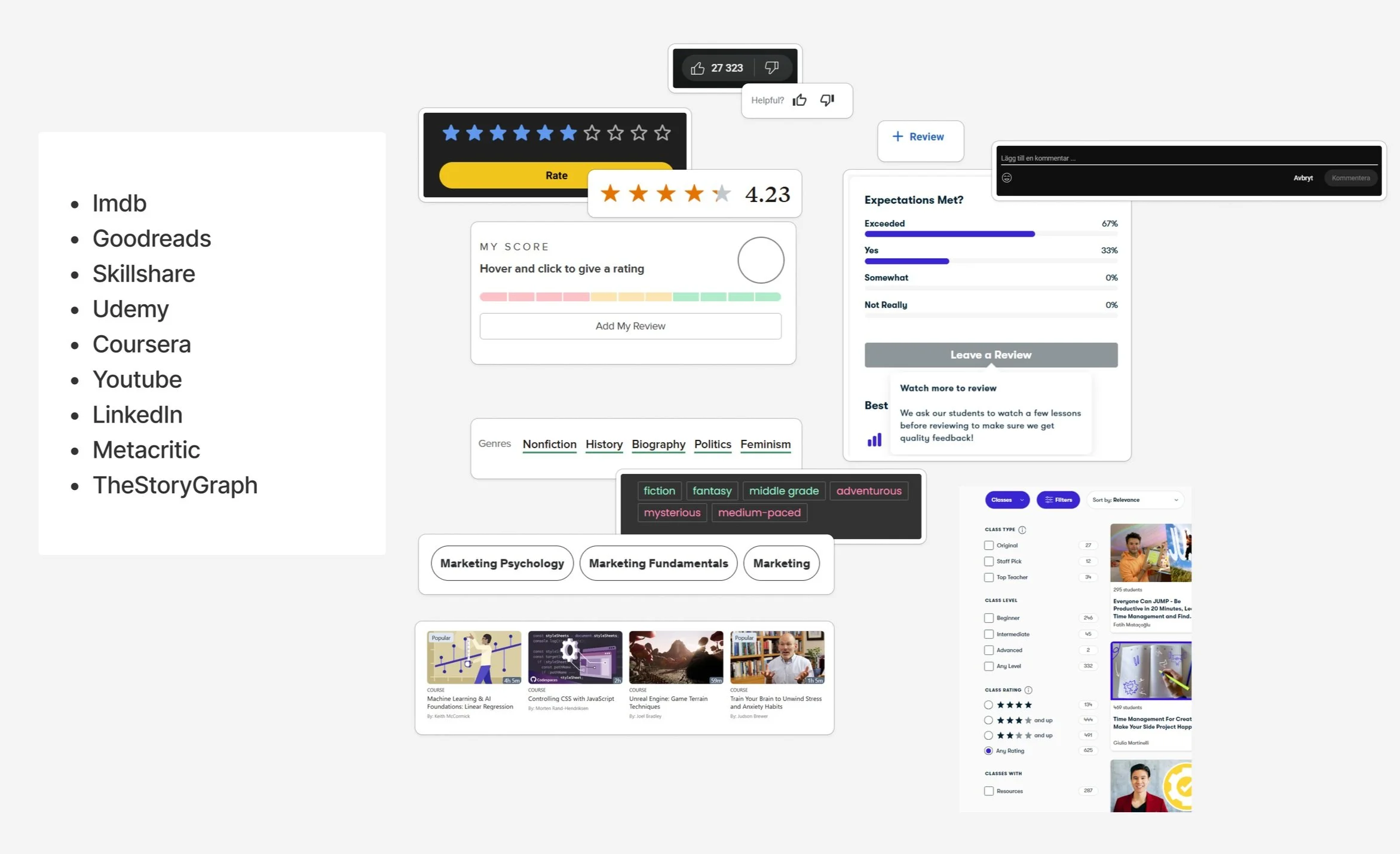 The focus was on layout, rating, filtering, search, comments and reviews. Seeing what works, what doesn’t and drawing comparisons.